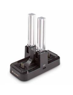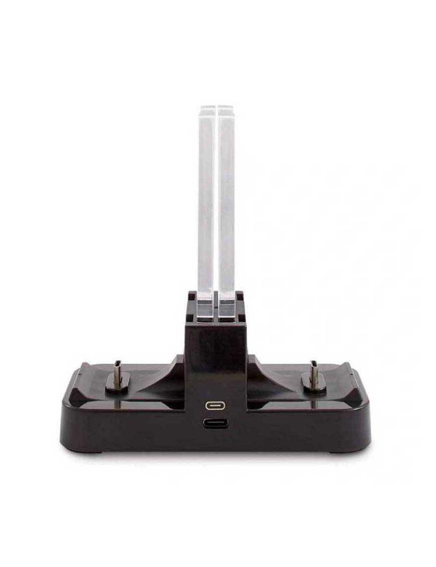 Carga mientras juegas con el soporte de carga de consola doble de Verbatim. Para usar con Nintendo Switch:tm: y Nintendo Switch:tm: Lite, este soporte cargador carga dos consolas simultáneamente, ideal para jugar con amigos. Este soporte cargador se conecta fácilmente a tu consola para cargarla mientras la usas. Este soporte, de diseño compacto y portátil, es ideal para usar en cualquier lugar, para que puedas jugar por más tiempo. El soporte cargador es compatible con el adaptador de alimentación de Nintendo Switch:tm:.* El soporte de carga de consola doble de Verbatim para usar con Nintendo Switch:tm: