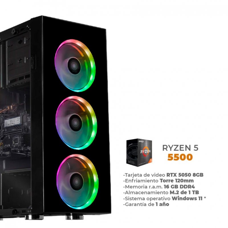 Procesador AMD Ryzen 5 5600GT - Almacenamiento 512GB SSD M.2 Nvme - 16GB de memoria RAM DDR4 3200MHZ - Conectividad WiFi 5G y Bluetooth 5.0. El diseño del gabinete es a tu elección.