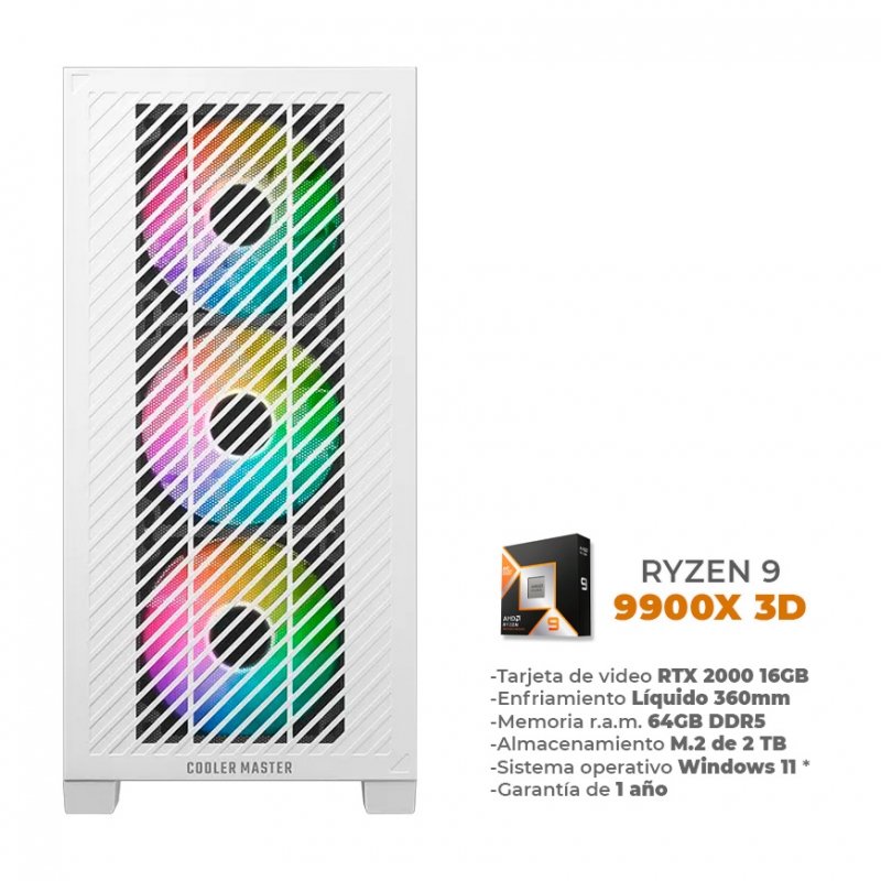 La Ghost combina potencia y versatilidad en un equipo equilibrado para trabajo creativo y gaming. Equipada con AMD Ryzen 9 9900X3D y Nvidia RTX 5060 de 8GB, rinde en programas como AutoCAD, Revit, Blender, SketchUp y Adobe, brindando fluidez en multitarea, edición y renderizados. Sus 32GB DDR5 y SSD NVMe 1TB ultra rápido aseguran velocidad y estabilidad en proyectos complejos. El enfriamiento líquido de 240mm mantiene el sistema bajo control en sesiones intensivas, mientras WiFi 6E, Bluetooth y Ethernet garantizan conectividad moderna. Una workstation confiable y premium que además ofrece gaming en calidad alta en títulos como Fortnite, GTA V y Call of Duty.