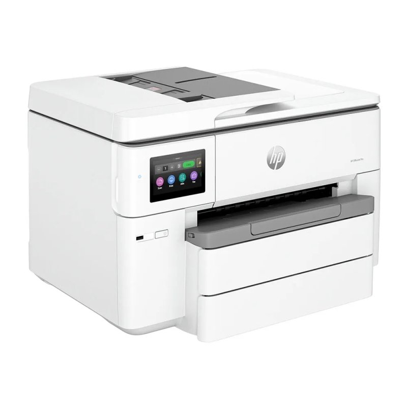 La HP OfficeJet Pro 9730 WF (número de parte 537P5C) es una impresora multifunción (imprimir, escanear, copiar, algunas versiones con fax) de tipo inyección de tinta, ideal para oficinas medianas o negocios que requieren imprimir en formatos más grandes (hasta tamaño A3 / Tabloide). Ofrece conectividad inalámbrica, funciones avanzadas como dúplex automático, escaneo con alimentador de documentos (ADF), pantalla táctil y buen rendimiento tanto para documentos en negro como en color.